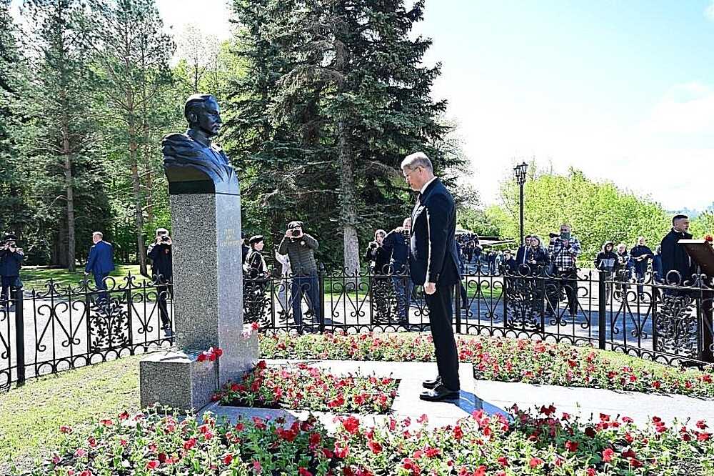 возложил цветы к памятнику Героя России,