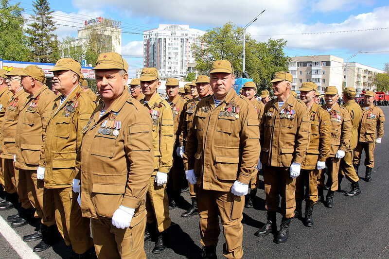 3. ФОРМИРОВАНИЕ РЕСПУБЛИКАНСКОГО ПАРАДНОГО РАСЧЕТА («ПАРАДНОЙ КОРОБКИ») ВЕТЕРАНОВ БОЕВЫХ ДЕЙСТВИЙ И ОБЪЕДИНЕНИЕ ПРЕДСТАВИТЕЛЕЙ ВСЕХ ОРГАНИЗАЦИЙ ВЕТЕРАНОВ БОЕВЫХ ДЕЙСТВИЙ РЕСПУБЛИКИ. 9 мая 2024 г. в Уфе парадный расчет ветеранов боевых действий, сформированный Региональной общественной организацией «Ветеран» Республики Башкортостан (РОО «Ветеран» РБ) принял участие в торжественном параде в столице Башкирии, посвященном 79-й годовщине Победы в Великой Отечественной войне. «Парадная коробка» ветеранов боевых действий объединяет в своих рядах ветеранов — представителей всех организаций ветеранов боевых действий. Парадный расчет ветеранов боевых действий принимал участие в торжественных парадах на площади Ленина в Уфе в День Победы 9 мая в 2010, 2015, 2021, 2022 и в 2023-ом годах. Ветераны боевых действий считают для себя долгом и большой честью участие в Парадах Победы. Для каждого ветерана боевых действий участие параде 9 Мая — это свидетельство и подтверждение верности традициям отцов и дедов, самое вдохновляющее событие года. Каждому прохождению в составе парада предшествуют тщательная организационная подготовка и многочисленные тренировки, которые начинаются задолго до Дня Победы. В составе парадной коробки неизменно ветераны, прошедшие Афганистан, участники контртеррористической операции на Северном Кавказе, другие горячие точки, а в настоящее время — и участники СВО, награжденные боевыми медалями и орденами. На трибунах присутствовали ветераны, труженики тыла, дети войны, участники боевых действий и специальной военной операции, члены их семей, ветераны военной службы и правоохранительных органов.
