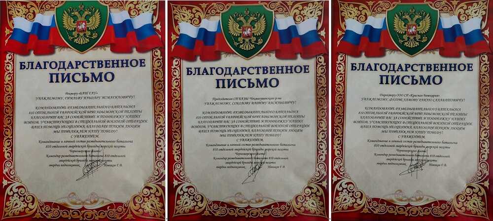 Бойцы Севастопольской 810-й бригады морской пехоты передали нам знамя морской пехоты и благодарственные письма на имя руководителей, которые помогли в осуществлении этого проекта, а также — пожелания всем здоровья и удачи. Выразили надежду на продолжение поддержки. Мы им, конечно, обещали и впредь помогать по необходимости!
