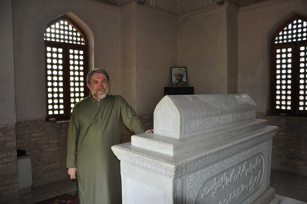 На снимке: в усыпальнице Алишера Навои (вверху); творение Алишера Навои (внизу).